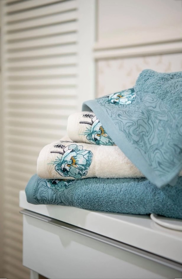מגבת מפנקת, איכותית ורכה בגימור פס רחב רקום ועיטור פרח בר עדין, 100% כותנה ג'אקרד.