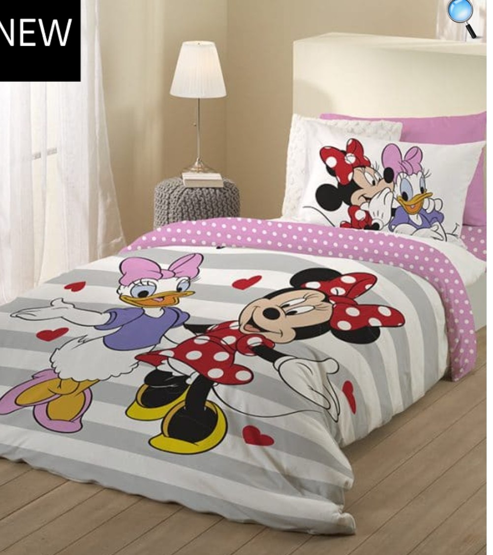 סט מצעים מלטף בהדפסה דיגטאלית של דמותה האהובה של מיני מאוס, הדפסה זו הינה תהליך יחודי בו ניצבע הבד מעומק הסיב בצבעים איכותיים ועמידים לאורך זמן.
